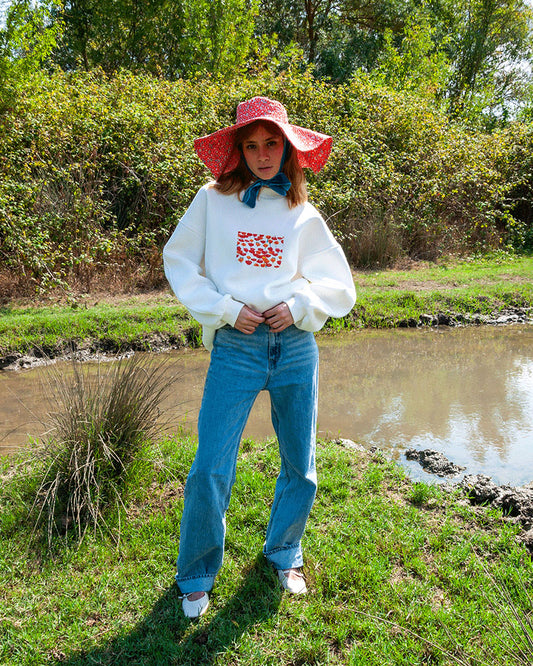 İMZA DESENLİ SWEATSHIRT - ÇIKARILABİLİR YAKA DETAYLI