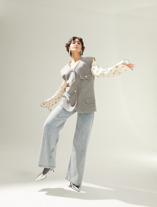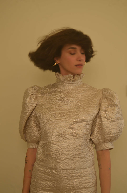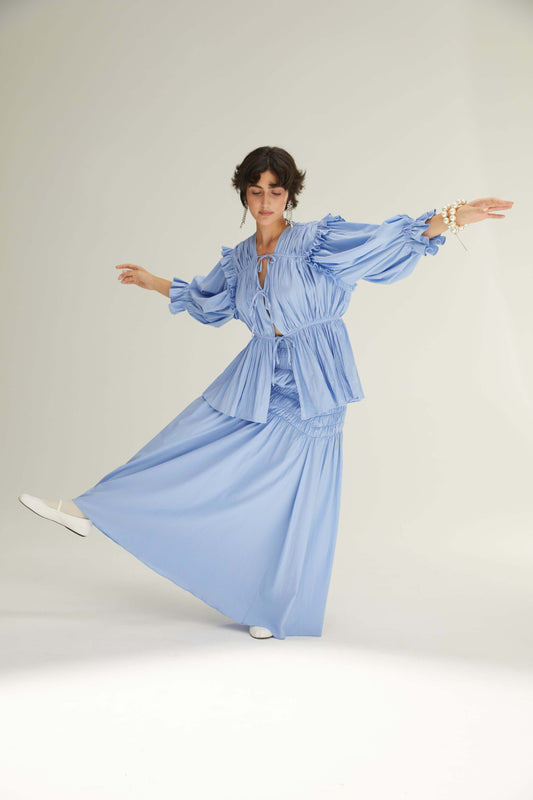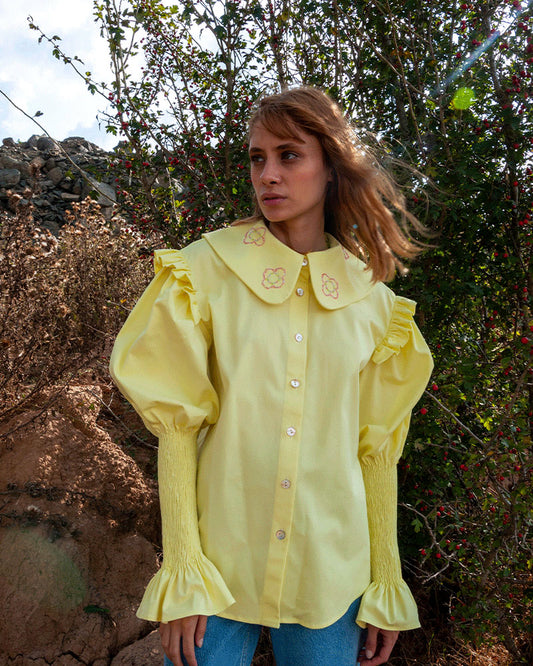 BONCUK İŞLEMELİ BALON KOLLU GÖMLEK